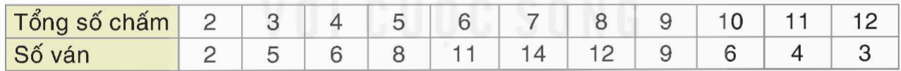 Trong trò chơi "Xúc xắc may mắn" ở mỗi ván chơi, người chơi gieo đồng thời hai con xúc xắc và ghi lại tổng số chấm xuất hiện trên hai con xúc xắn. Một người chơi 80 ván và ghi lại kết quả trong bảng sau: