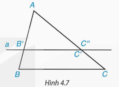 Cho ∆ ABC có AB = 6 cm, AC = 9 cm. Trên cạnh AB lấy điểm B', trên cạnh AC lấy điểm C' sao cho AB' = 4 cm, AC' = 6 cm (H.4.7).