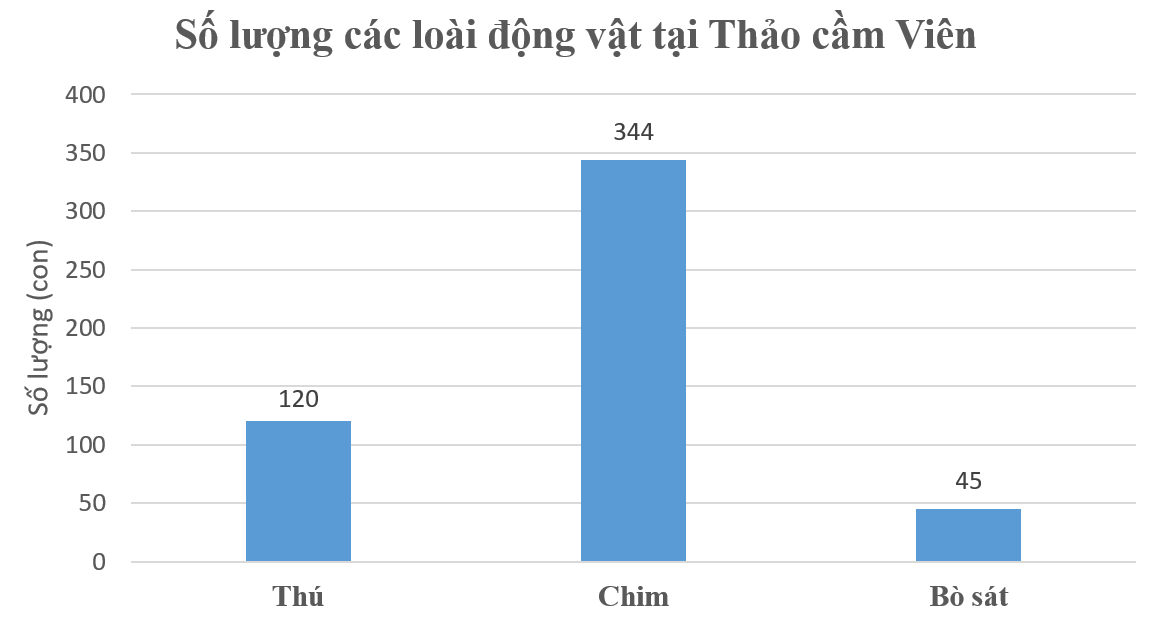 Do số lượng các loài động vật lớn, không có ước chung lớn nên ta chọn biểu đồ cột.