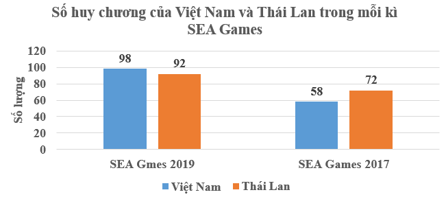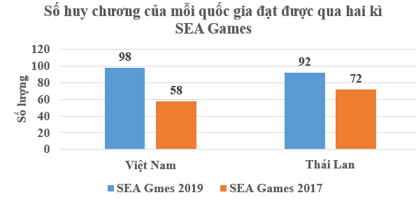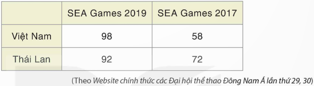 Bảng thống kê sau biểu diễn số huy chương vàng trong hai kì SEA Games năm 2017 và năm 2019 của đoàn thể thao Việt Nam, Thái Lan.