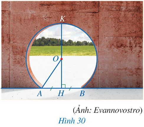 Trong Hình 30, mép ngoài cửa ra vào có dạng một phần của đường tròn bán kính 1,6 m. Hãy tính chiều cao HK của cửa đó (làm tròn kết quả đến hàng phần mười của mét), biết AH = 0,9 m.