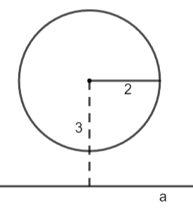 Vì 3 > 2 nên khoảng cách từ O đến đường thẳng a lớn hơn bán kính của đường tròn (O; 2 m)