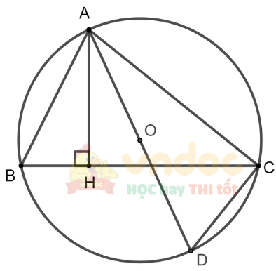 Cho tam giác ABC có ba đỉnh nằm trên đường tròn (O) và AH là đường cao. Đường thẳng AO cắt đường tròn (O) tại điểm thứ hai D. Chứng minh rằng: