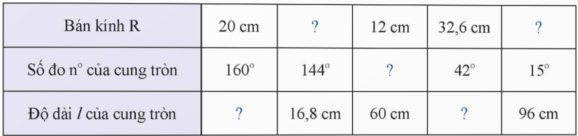 Hãy hoàn thành bảng số liệu sau vào vở (lấy π ≈ 3,14 và làm tròn kết quả đến hàng phần mười).