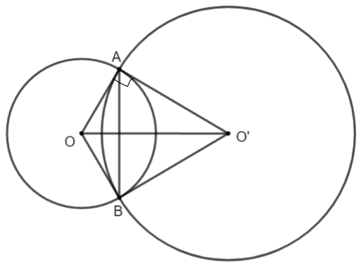 Cho hai đường tròn (O), (O') cắt nhau tại hai điểm A, B sao cho đường thẳng OA là tiếp tuyến của đường tròn (O'). Chứng minh đường thẳng O'B là tiếp tuyến của đường tròn (O).