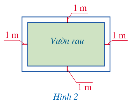 Trên một mảnh đất có dạng hình chữ nhật với chu vi bằng 52m. Trên mảnh đất đó, người ta làm một vườn có dạng hình chữ nhật có diện tích là 112 m2 và một lối đi xung quanh vườn rộng 1 m (Hình 2). Tính các kích thước của mảnh đất đó.