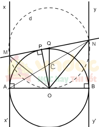 Cho đường tròn (O) đường kính AB, tiếp tuyến xx' tại A và tiếp tuyến yy' tại B của (O). Một tiếp tuyến thứ ba của (O) tại điểm P (P khác A và B) cắt xx' tại M và cắt yy' tại N.