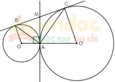 Cho đường tròn (O) và (O') tiếp xúc ngoài với nhau tại A và cùng tiếp xúc với đường thẳng d tại B và C (khác A), trong đó B ∈ (O) và C ∈ (O'). Tiếp tuyến của (O) tại A cắt BC tại M. Chứng minh rằng: