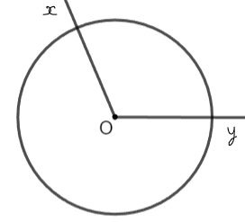 Cho đường tròn (O). Hãy vẽ góc xOy có đỉnh là tâm O của đường tròn đó.