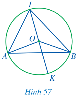 Cho góc AIB nội tiếp đường tròn tâm O đường kính IK sao cho tâm O nằm trong góc đó (Hình 57).