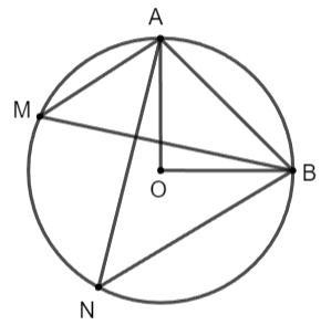 \(\widehat{AOB}=90^{\circ}\). Giả sử M, N lần lượt là các điểm thuộc cung lớn AB và cung nhỏ AB (M, N khác A và B).