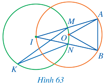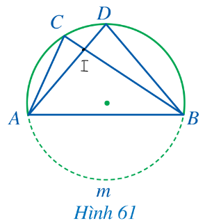 Trong Hình 61, gọi I là giao điểm của AD và BC. Chứng minh IA . ID = IB . IC.