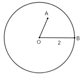 Vẽ đường tròn (O; 2 cm) và các điểm A, B thỏa mãn OA < 2 cm, OB = 2 cm. Nêu nhận xét về vị trí các điểm A, B so với đường tròn (O; 2 cm).