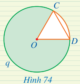 Cho hình quạt tròn COD giới hạn bởi hai bán kính OC, OD và cung CqD sao cho OC = CD (Hình 47). Hãy tìm số đo cung CqD ứng với hình quạt đó.