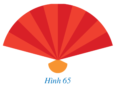 Hình quạt tô màu đỏ ở Hình 65 có bán kính bằng 2 dm và góc ở tâm bằng 150o.