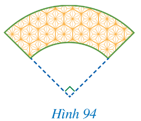Hình 94 mô tả mảnh vải có dạng một phần tư hình vành khuyên, trong đó hình vành khuyên giới hạn bởi hai đường tròn cùng tâm và có bán kính lần lượt là 3 dm và 5 dm. Diện tích của mảnh vải đó bằng bao nhiêu decimét vuông (làm tròn kết quả đến hàng phần mười)?