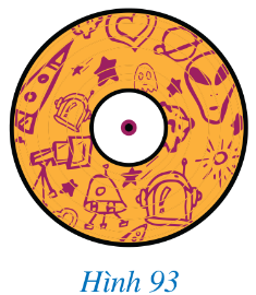 Mặt đĩa CD ở Hình 93 có dạng hình vành khuyên giới hạn bởi hai đường tròn có bán kính lần lượt là 1,5 cm và 6 cm. Hình vành khuyên đó có diện tích bằng bao nhiêu centimét vuông (làm tròn kết quả đến hàng đơn vị)?