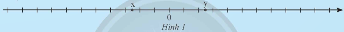 Cho hai số thực x và y được biểu diễn trên trục số (Hình 1). Hãy cho biết số nào lớn hơn.