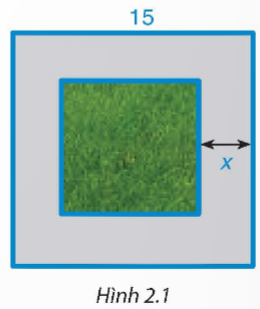 Tình huống: Trong một khu vườn hình vuông có cạnh bằng 15 m người ta làm một lối đi xung quanh vườn có bề rộng là x (m) (H.2.1). Để diện tích phần đất còn lại là 169 m2 thì bề rộng x của lối đi là bao nhiêu?