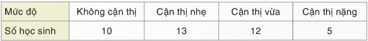 Bảng thống kê sau cho biết số lượng học sinh của lớp 9B theo mức độ cận thị.