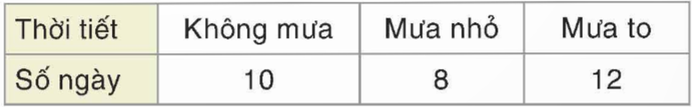 Theo dõi thời tiết tại một địa điểm du lịch trong 30 ngày người ta thu được bảng sau: