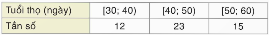 | Tuổi thọ (ngày) | [30; 40) | [40; 50) | [50; 60) |