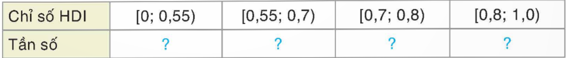 Dựa vào dữ liệu trên, hãy hoàn thành bảng tần số ghép nhóm sau: