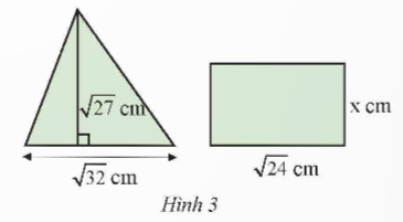 Biết rằng hình tam giác và hình chữ nhật ở Hình 3 có diện tích bằng nhau. Tính chiều rộng x của hình chữ nhật.
