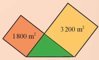 Bài toán: Một khu đất hình tam giác vuông tiếp giáp với hai thửa ruộng hình vuông có diện tích như hình bên. Khu đất hình tam giác vuông có chu vi bằng chu vi thửa ruộng bé không? Kiểm tra bằng cách nào?