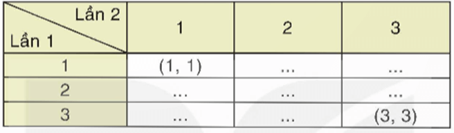 Gợi ý: Ta liệt kê được tất cả các kết quả có thể của phép thử bằng cách lập bảng như mẫu sau: