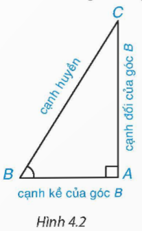 Xét góc C của tam giác ABC vuông tại A (H.4.3). Hãy chỉ ra cạnh đối và cạnh kề của góc C.
