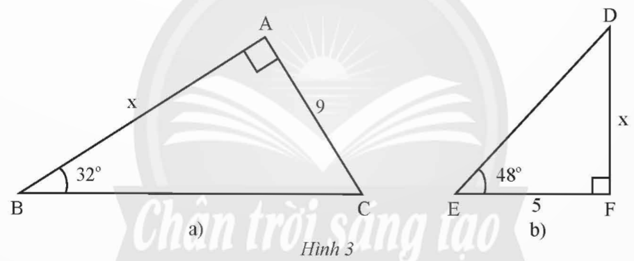 Tính độ dài cạnh góc vuông x của mỗi tam giác vuông trong Hình 3 (kết quả làm tròn đến hàng phần trăm).