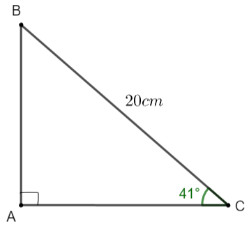 AB = BC . sin C = 20 . sin 41o ≈ 13,12 cm