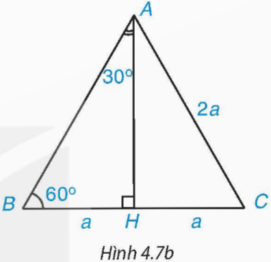 \(\sin {30^0} = \sin \widehat {BAH} = \frac{{BH}}{{AB}} = \frac{a}{{2a}} = \frac{1}{2}\)