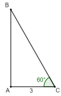 Cho tam giác vuông có một góc nhọn 60° và cạnh kề với góc 60° bằng 3 cm. Hãy tính cạnh đối của góc này.