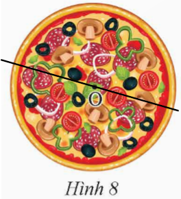 Nêu cách chia một cái bánh có dạng hình tròn tâm O (Hình 8) thành hai phần bằng nhau.