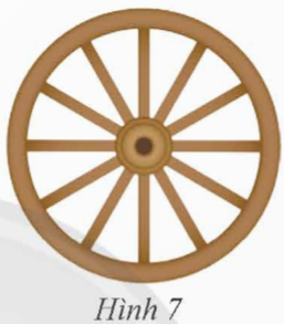 Xác định tâm đối xứng và trục đối xứng của bánh xe trong Hình 7. Giải thích cách làm.