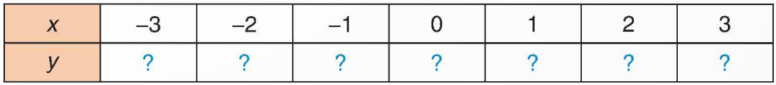 | y = 3x2 | 12 | 3 | 0 | 3 | 12 |