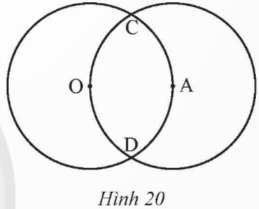 Cho hai đường tròn (O; 2 cm) và (A; 2 cm) cắt nhau tại C, D, điểm A nằm trên đường tròn tâm O (Hình 20).