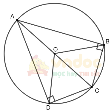 Tam giác ADC vuông tại D có DO là đường trung tuyến nên OA = OB = OD