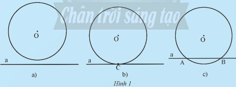 Nêu nhận xét về số điểm chung của đường thẳng a và đường tròn (O) trong mỗi hình sau: