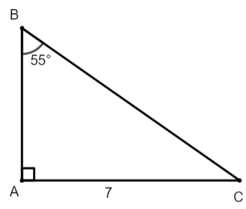\(BC=\frac{AC}{\sin B}=\frac{7}{\sin55^o}\approx8,5\) (m)