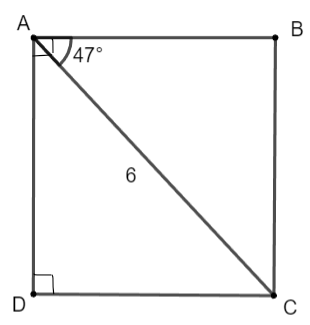 \(\widehat {BAC} = 47^\circ\). Tính độ dài các đoạn thẳng AB, AD.