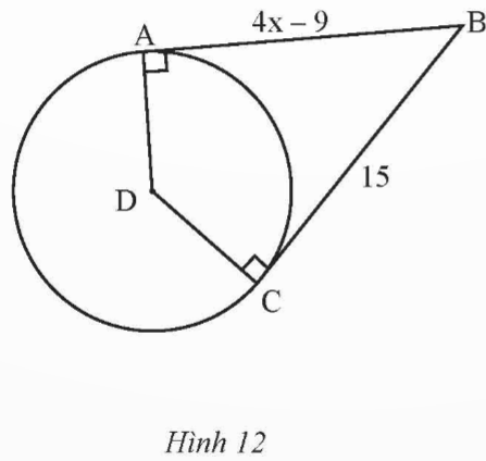Quan sát Hình 15. Biết AB, AC lần lượt là tiếp tuyến của đường tròn (O) tại B, C. Tính giá trị của x.