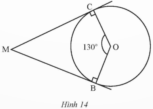 Trong Hình 14, MB, MC lần lượt là tiếp tuyến của đường tròn (O) tại B, C;