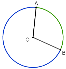 Vẽ vào vở đường tròn (O) và hai điểm A, B nằm trên (O). Dùng bút chì khác màu tô hai phần của đường tròn được phân chia bởi hai điểm A và B.