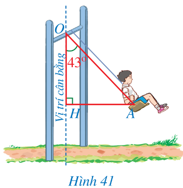 \(\widehat {AOH} = 43^\circ\) thì khoảng cách AH từ em bé đến vị trí cân bằng là bao nhiêu mét (làm tròn kết quả đến hàng phần trăm)?