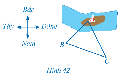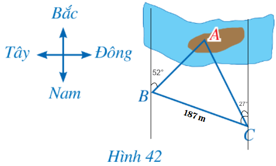 Một người đứng ở vị trí B trên bờ sông muốn sử dụng la bàn để ước lượng khoảng cách từ vị trí đó đến một vị trí A ở trên một cù lao giữa dòng sông. Người đó đã làm như sau: