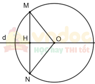 Cho đường tròn (O; R). Giả sử d là đường thẳng đi qua tâm O, M là một điểm tùy ý trên đường tròn (O; R). Kẻ MH vuông góc với d tại H. Trên tia MH lấy điểm N sao cho H là trung điểm của MN (ta gọi điểm N là điểm đối xứng với điểm M qua đường thẳng d). Điểm N có thuộc đường tròn (O; R) hay không?