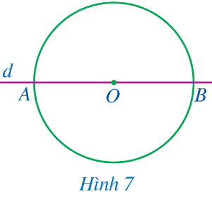 a) Vẽ đường thẳng d đi qua tâm O cắt đường tròn tại A, B. So sánh OA và OB (Hình 7).